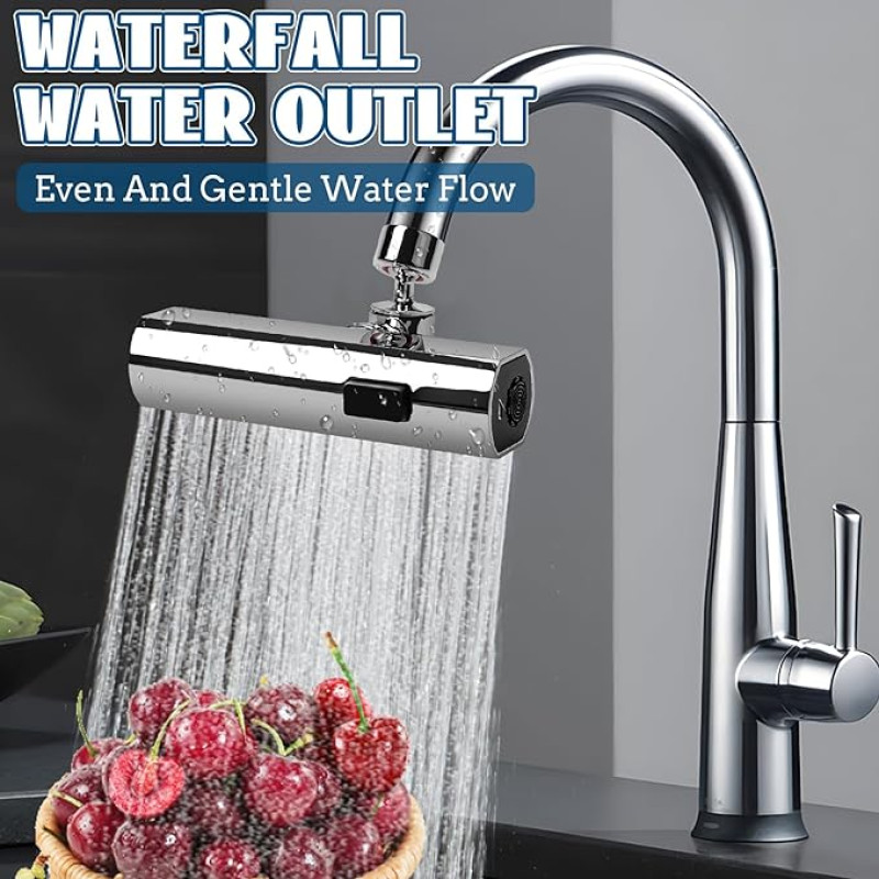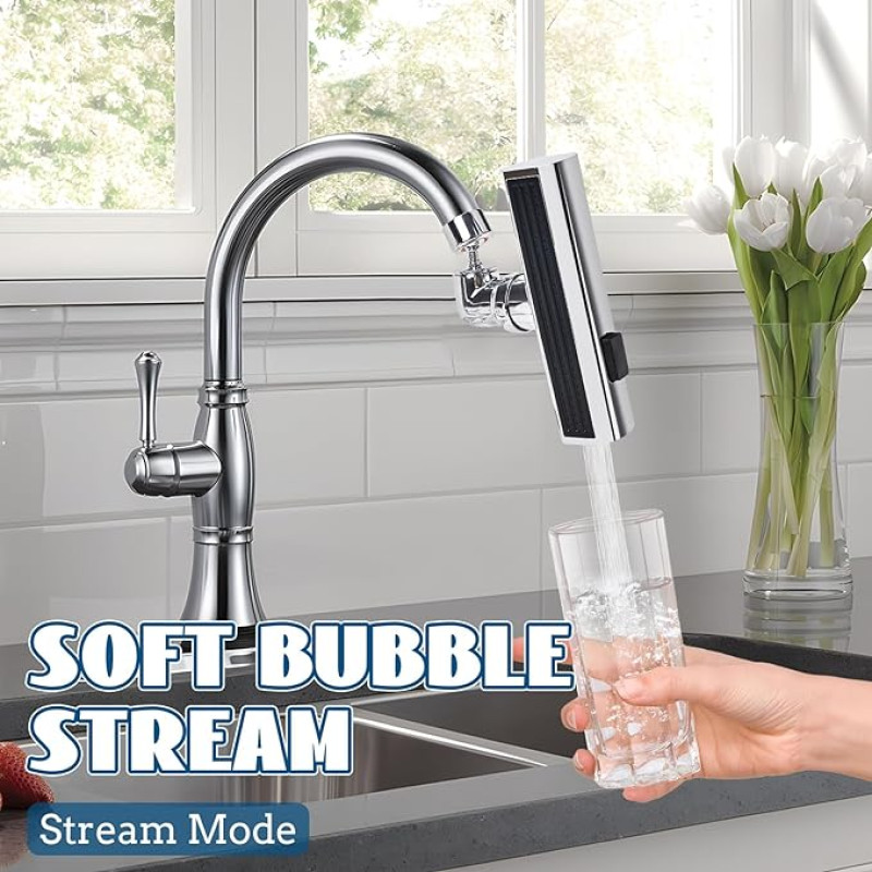 - صنبور المطبخ الشلال تم تصميم رأس الرش الخاص بصنبور المطبخ ليدور ويحتوي على 3 أوضاع لتلبية احتياجاتك. جهاز تهوية دوار 360 درجة مريح لتنظيف كل ركن من أركان الحوض وغسل وجه الشعر، إنه محطة غسيل رائعة للعين.