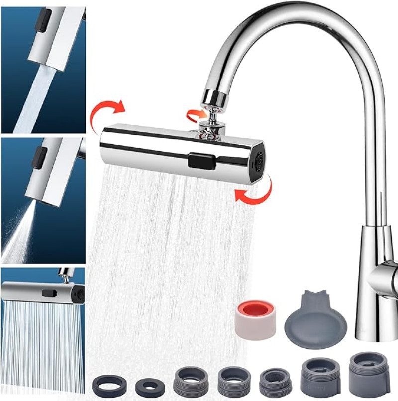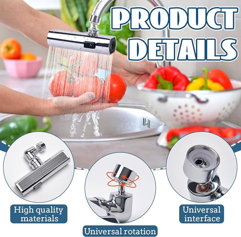 - جودة عالية: محول صنبور المطبخ مصنوع من الفولاذ المقاوم للصدأ عالي الجودة، مثالي لصنابير المطبخ والحمام. يقوم الفلتر المكون من أربع طبقات داخل الفوهة بإزالة الشوائب من الماء بشكل فعال ويمنع الختم المزدوج التسرب.